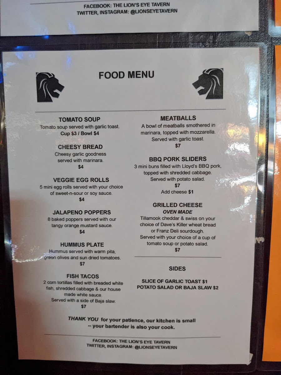 Introducing "The Lion's Eye," a cherished dive bar located at 5919 SE 82nd Ave, Portland, OR. Renowned for its friendly atmosphere and wallet-friendly prices, this gem offers an enticing menu of budget-friendly drinks. Customers rave about the standout value—a craft beer pint paired with a shot of Maker's Mark for just $10.50. The establishment fosters a warm and welcoming environment, where experienced bartenders like Christina ensure every guest feels like a regular.